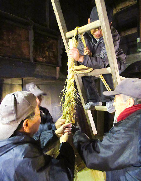 新しい年を迎える準備として、里内の神社や各民家に飾るしめ縄、しめ飾りをつくる様子をご覧いただけます。