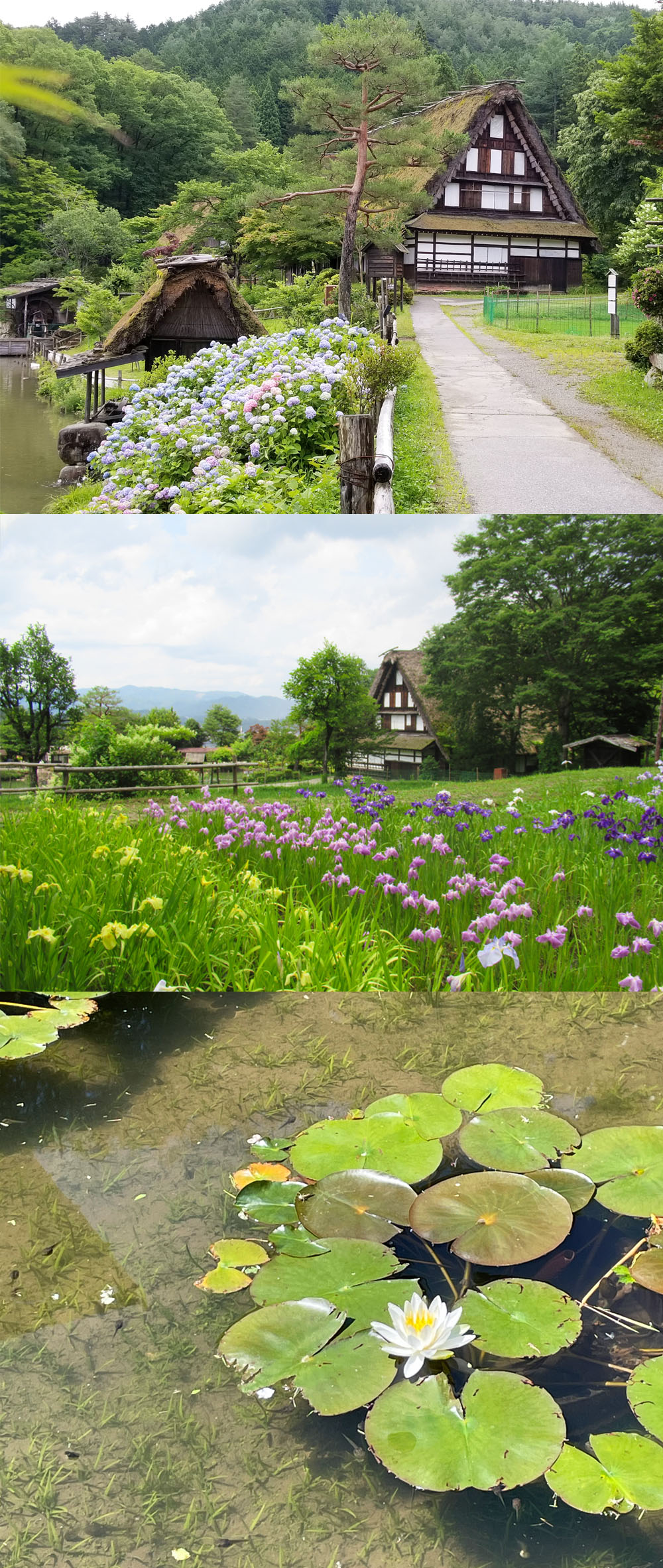 飛驒の里では6月下旬から7月中旬にかけて、紫陽花や花菖蒲、水蓮など季節の花々をご覧いただけます。