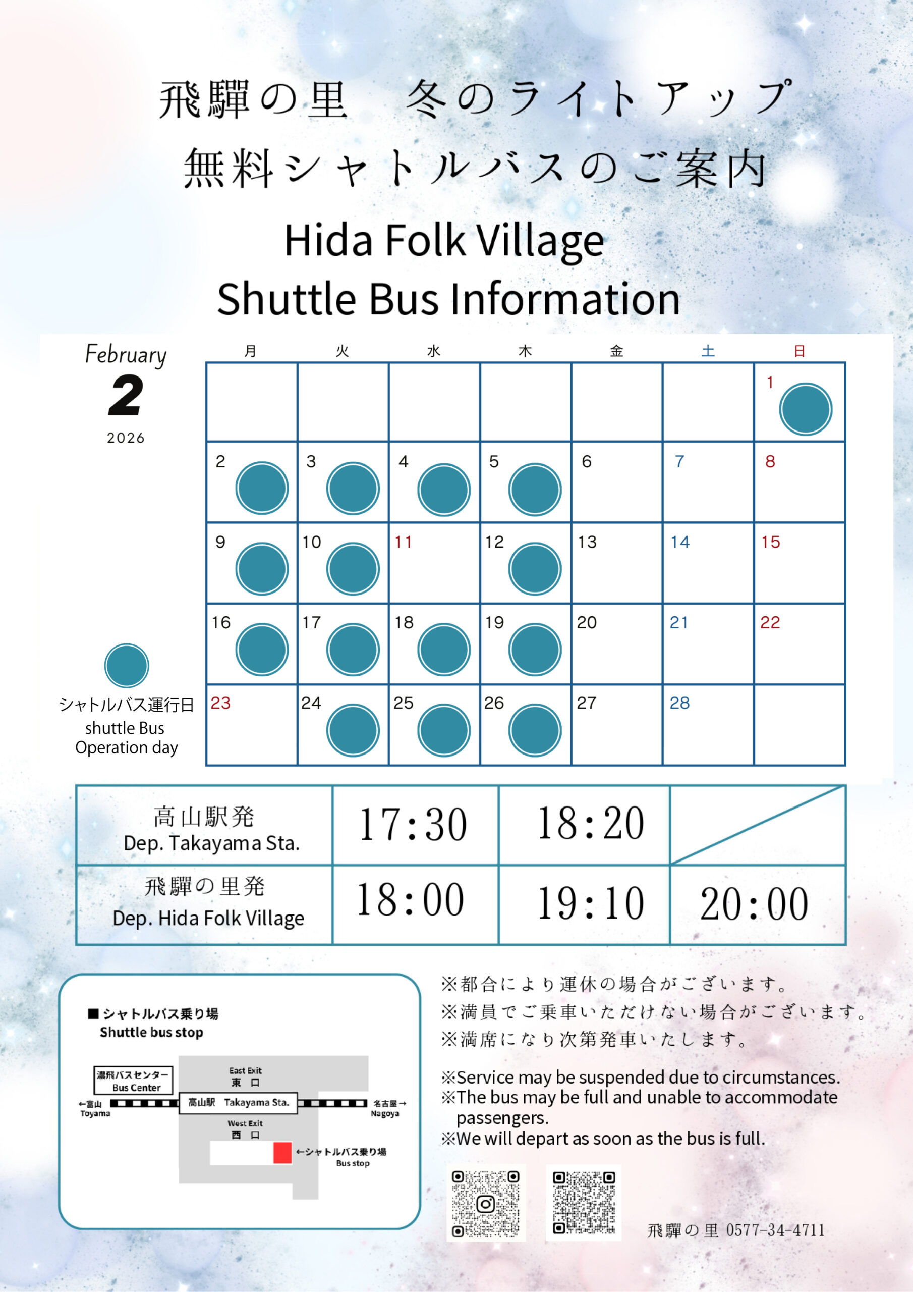 ※バスの発着の遅延によるお客さまの損害につきましては、一切の責任を負えません、ご了承ください。